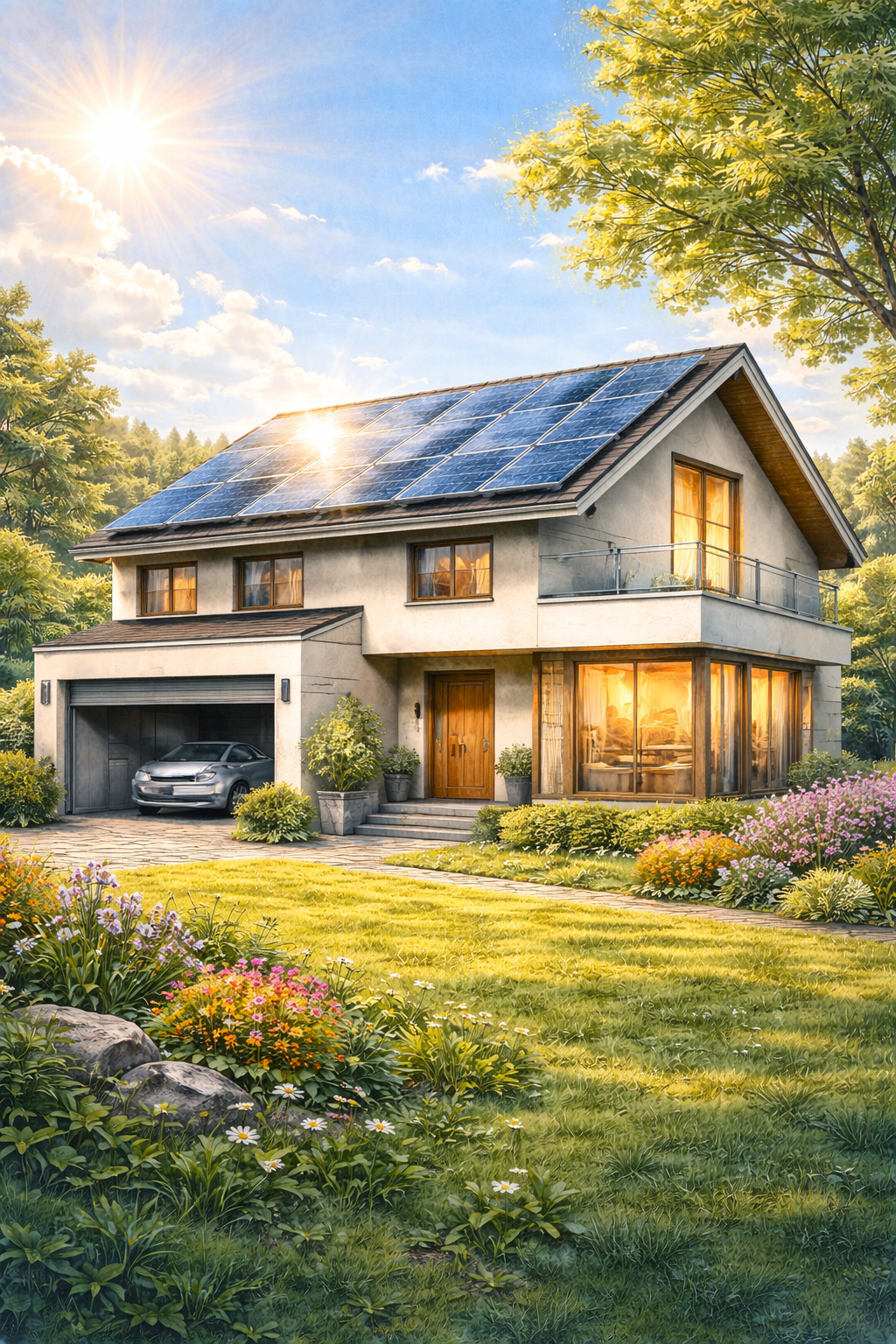 Photovoltaik bezeichnet die Umwandlung von Sonnenlicht in elektrische Energie mithilfe von Solarmodulen. Diese werden meist auf dem Dach installiert und erzeugen umweltfreundlichen Strom direkt vor Ort. Der produzierte Strom kann selbst genutzt, gespeichert oder ins öffentliche Netz eingespeist werden.